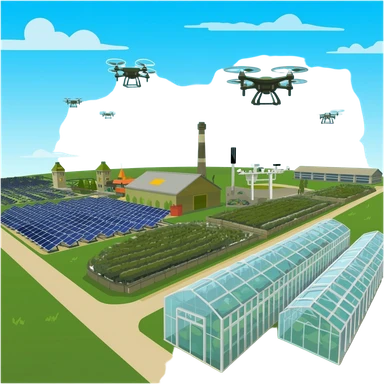 a military grade ai farms building from an overhead view emoji