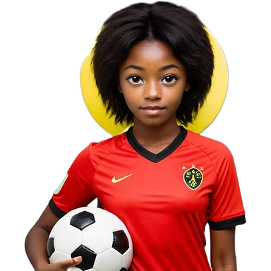 A imagem retrata um jovem de cabelo vermelho-neon e corte moderno, vestido com uma camisa de futebol preta e vermelha e uma corrente de ouro. Ele está em um ambiente interno, olhando para a câmera com uma expressão engajada e as mãos levantadas em um gesto de ênfaseemoji