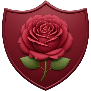 A smooth, rounded shield silhouette in deep wine red (#7A0F1E) with a centered minimalist rose emblem. The rose should be elegant and simple, with soft curved petals and subtle symmetry. emoji