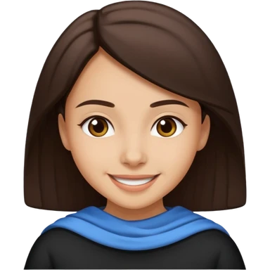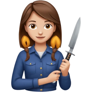 A girl whit brown hair, brown eyes a lite smile and in her back she has in her hand a knife emoji