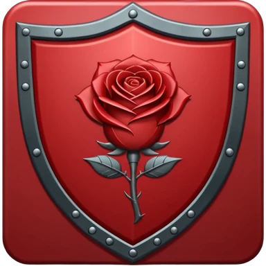 A bold, symmetrical shield icon in deep blood red (#7A0F1E) with a sharp silhouette and slightly pointed base. Centered on the shield is a stylized rose with subtle thorn accents — clean but slightly angular, giving it a defensive edge. emoji