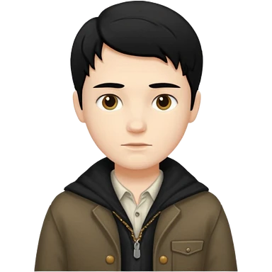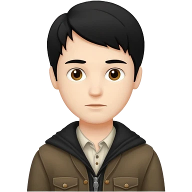 A white boy with black hair, wearing old clothes and a beautiful style emoji