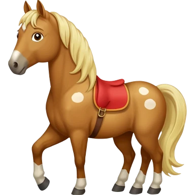 a brown horse with white spots and blond mane emoji
