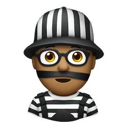 emoji wearing a jail shirt, a black beanie, and a mask. emoji