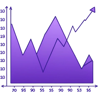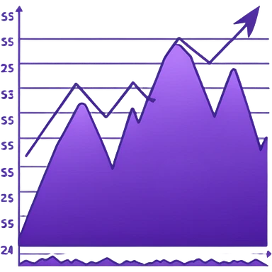 A line graph in the style of a purple Japanese sketch emoji