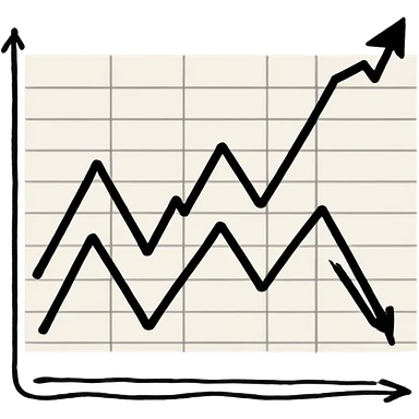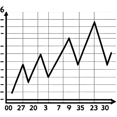 A line graph in the style of a Japanese sketch emoji