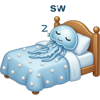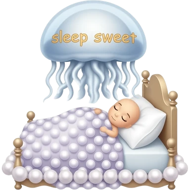 The words "sleep sweet" hovering over a jellyfish which is sleeping on a bed of pearls. emoji
