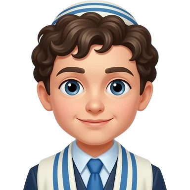 young smiling hassidic jewish boy with curly peyos and a kippah emoji