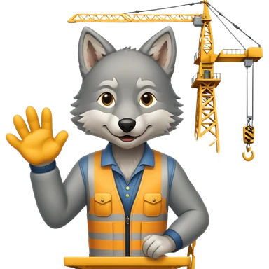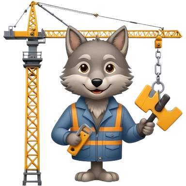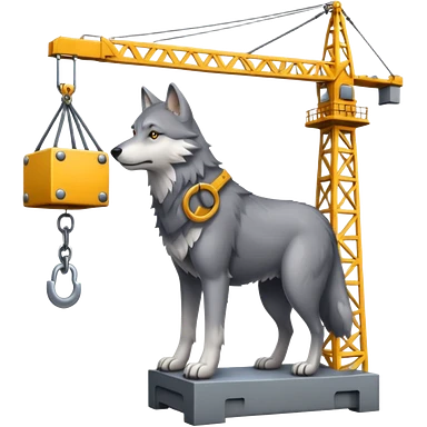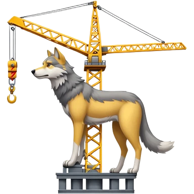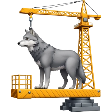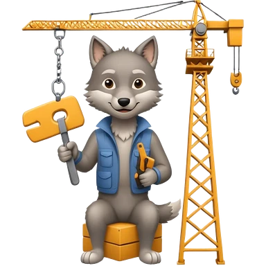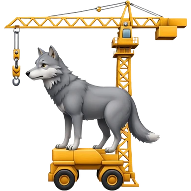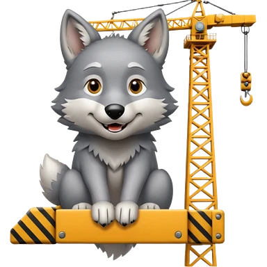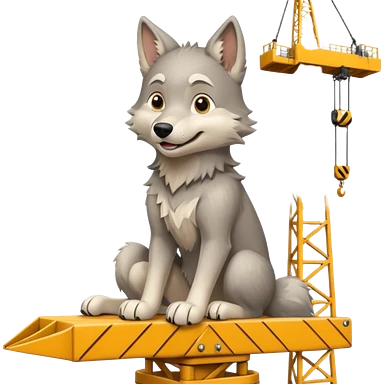 a joyful gray wolf sits on a tower crane and controls it with his paws emoji | AI Emoji Generator
