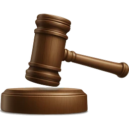 An emoji representing justice and penalty. A wooden judge's gavel striking a sound block, symbolizing a legal decision or punishment. The design is simple, 3D, and slightly glossy, resembling official court decisions emoji