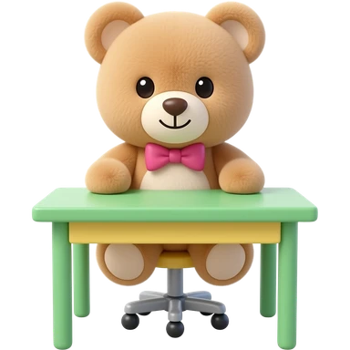 green and yellow desk full cute teddy bear plushie with soft texture, pastel colors, kawaii aesthetic, 3D renderinspired by Barbie colour palette emoji