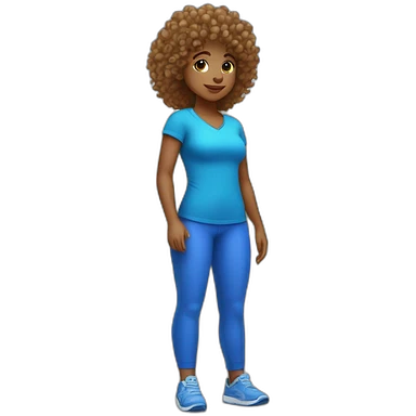A curly kid, wearing blue clothes and using her insulin pump while playing in a park. emoji
