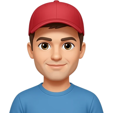 A man wearing a red baseball cap, brown hair, blue t-shirt. emoji