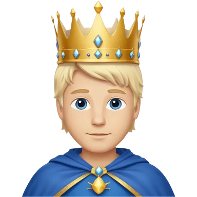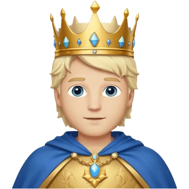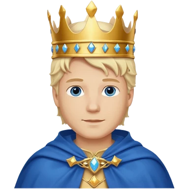 1 White king, blond hair, blue eyes, kind and benevolent vibe, gentle smile, wearing a crown and blue cloak emoji emoji