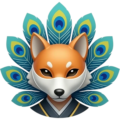 An emoji of Sudoji, a stylized animal blending a Japanese kitsune and an Indian peacock, symbolizing intelligent IT support and root access, with sleek fox-like features and elegant peacock-inspired tail feathers, wearing a minimal ninja-style outfit emoji