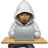 A girl is working in front of a computer, and a cat is lying next to the computer emoji