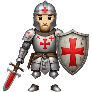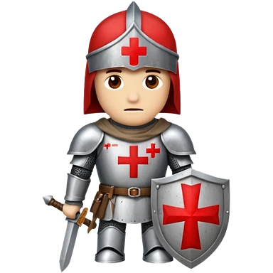 knight templar in medieval armor, white mantle with red cross, helmet, shield emoji