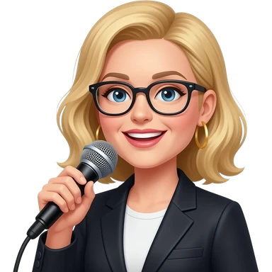 a lady singer with with golden hairs hold a mic and wear glasses front view close up with half body emoji | AI Emoji Generator