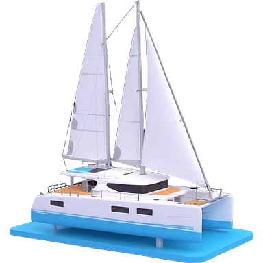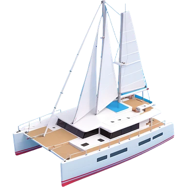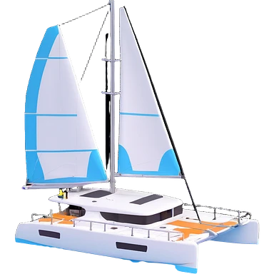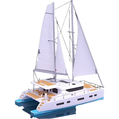 a lagoon 42 catamaran with no wording on the boat and an i message chat bubble icon coming out the top of the boat emoji | AI Emoji Generator