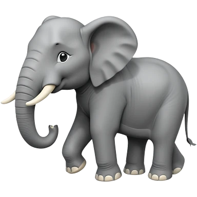 A large 3D cartoon elephant standing on green grass, smooth gray skin, big ears, curved trunk raised slightly, gentle smile, bright natural sunlight, Memoji-style. emoji | AI Emoji Generator