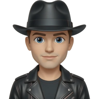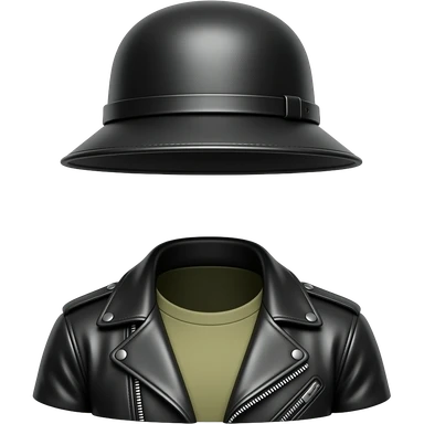 a leather Dom black leather brimmed hat and leather jacket emoji