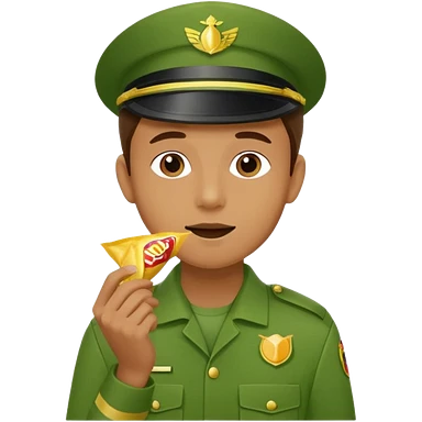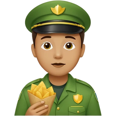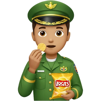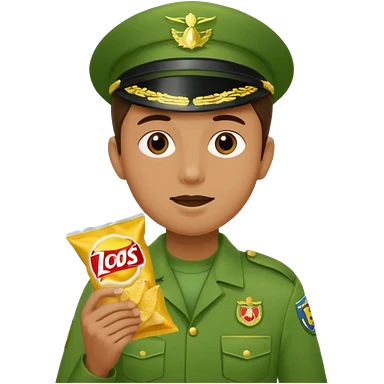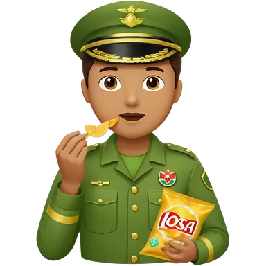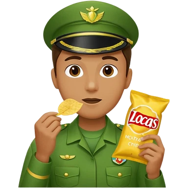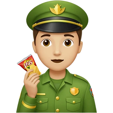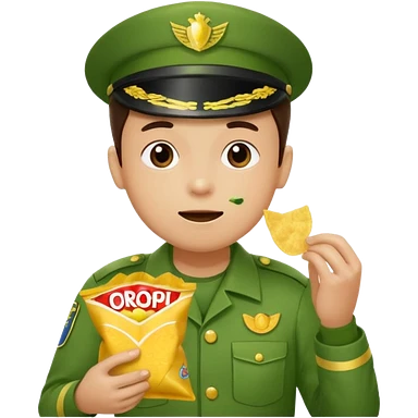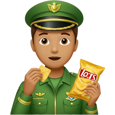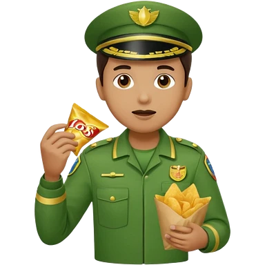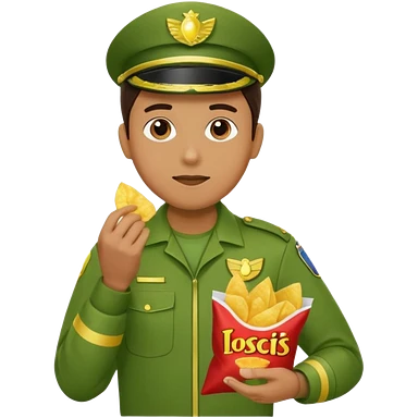 supermarket collegue wearing a green uniform and eating a packet of crisps emoji