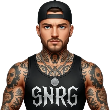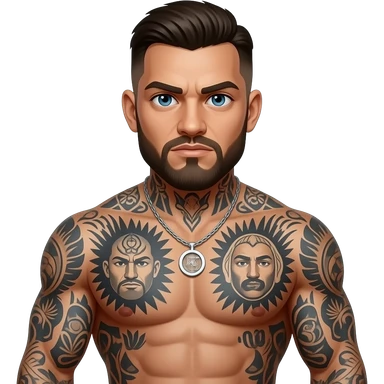 A tough, gang-affiliated person—muscular and covered in tattoos. emoji