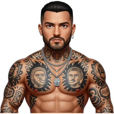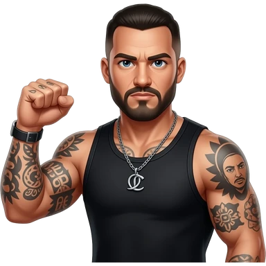 A tough, gang-member type—muscular and tattooed—clenching his fist. emoji