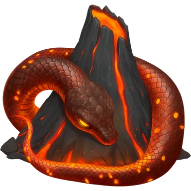 A volcanic salamander with obsidian scales and veins of flowing lava visible beneath its skin, able to shape-shift between solid and semi-molten forms depending on its environment. emoji