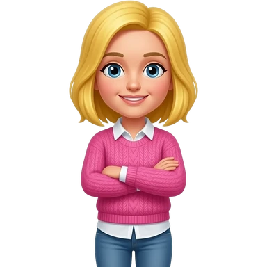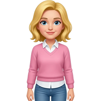 For me, a white-skinned woman is standing tall wearing a white shirt and pink sweater, jeans and yellow hair. emoji