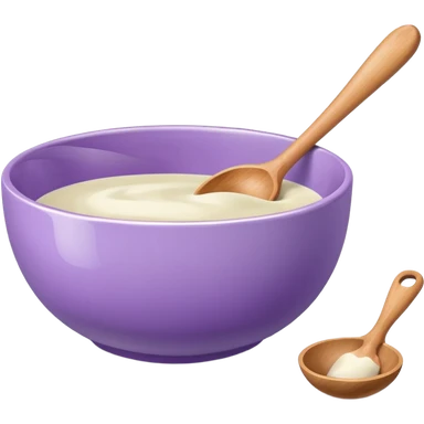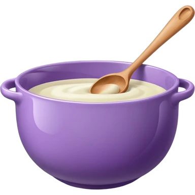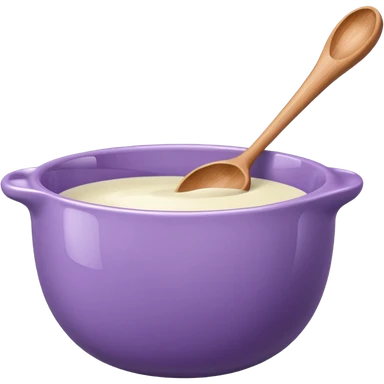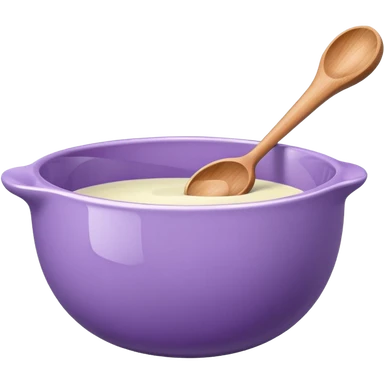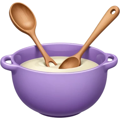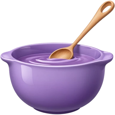 a lilac ceramic mixing bowl with a wooden spoon stirring emoji