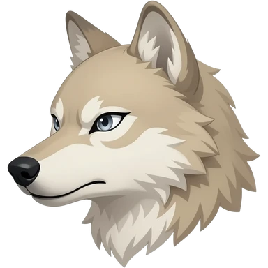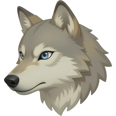 A little bit realistic Adult alpha Beige wolf head very realistic Turn sideways light blue gray eyes emoji