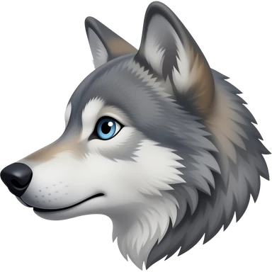 A little bit angry gray wolf head realistic Turn sideways light blue gray eyes emoji