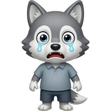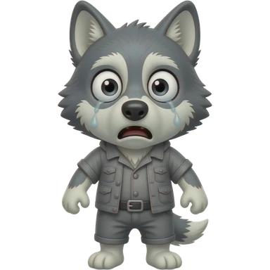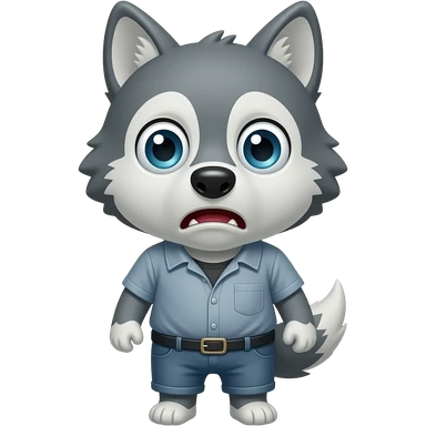 A little gray wolf shaped like a little human, dressed in gray, looking at us because he's very fearful. emoji