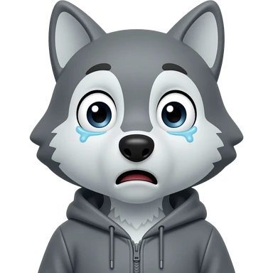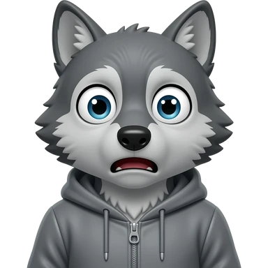 A little gray wolf shaped like a little human, dressed in gray, looking at us because he's very alarmed without tears in its eyes. emoji