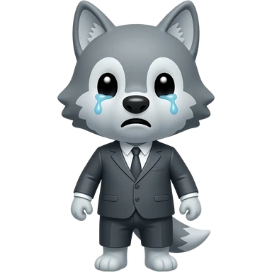 A little gray wolf shaped like a little human, dressed in gray, looking at us because he's very terrified. emoji