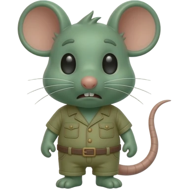A little green mouse shaped like a little human, dressed all in khaki green, looking at us with a nauseating expression. emoji