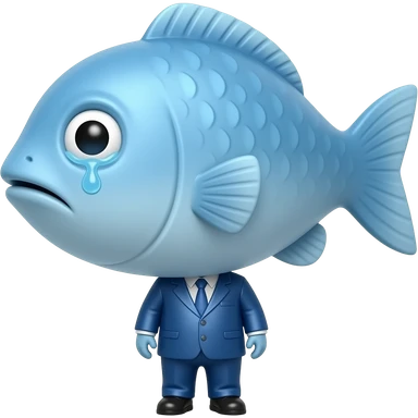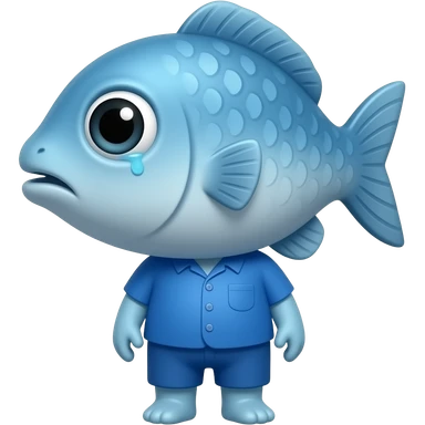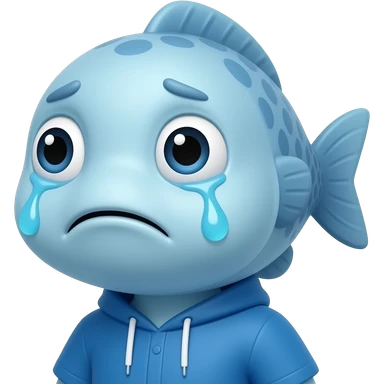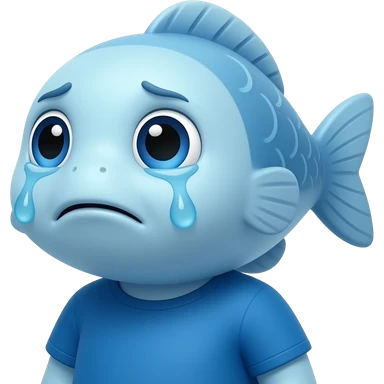 A little blue fish shaped like a human dressed head to toes in blue is looking at us with a very sad face with tears. emoji | AI Emoji Generator