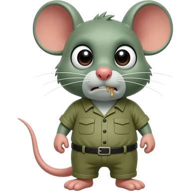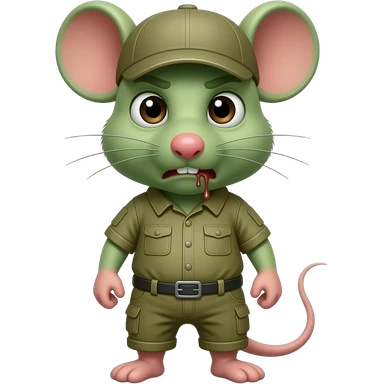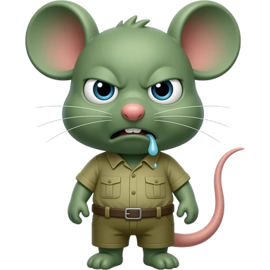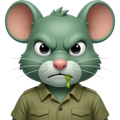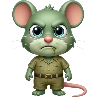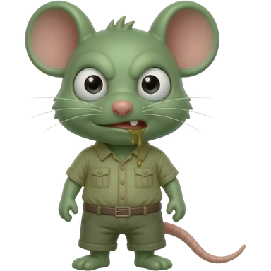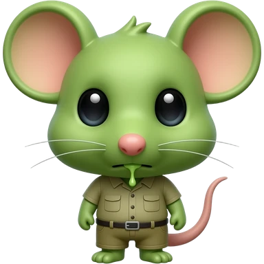 A little green mouse shaped like a little human dressed in khaki green, staring at us with a look of vile, he has vomit on his mouth. emoji