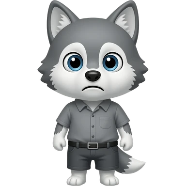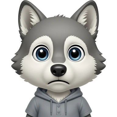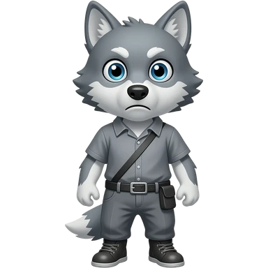 A little gray wolf shaped like a little human, dressed in gray, looking at us because he's scared. emoji