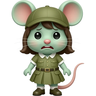 A little green mouse shaped like a little girl dressed in khaki green, looking at us with a disgusted and nauseating expression. emoji