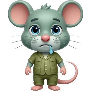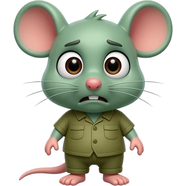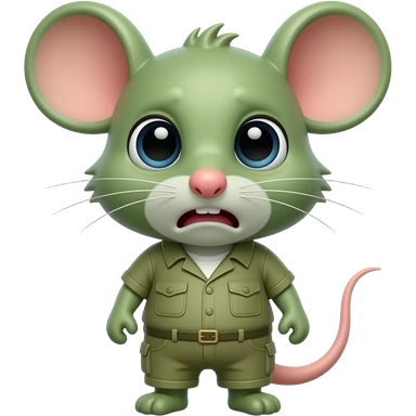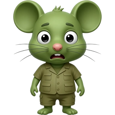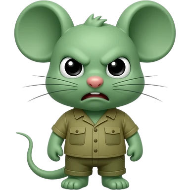 A little green mouse shaped like a little human dressed in khaki green, looking at us with a disgusted and nauseating expression. emoji