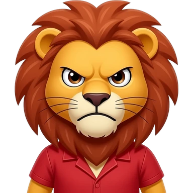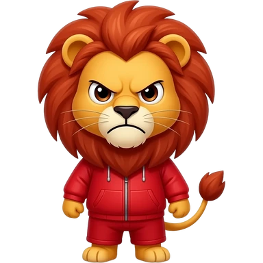 A little red lion dressed head to toe in red, looking at us with a very angry expression. emoji