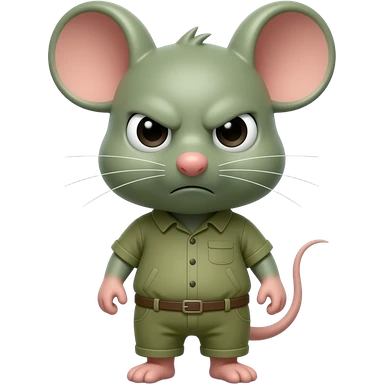 A little green mouse shaped like a little human, dressed all in khaki green, looking at us with a very disgusted expression. emoji