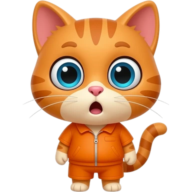 A little orange cat shaped like a little human, dressed all in orange, looking at us with a very surprised expression. emoji