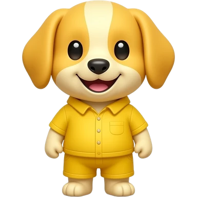 A little yellow dog shaped like a little human, dressed all in yellow, looking at us with a very happy expression. emoji