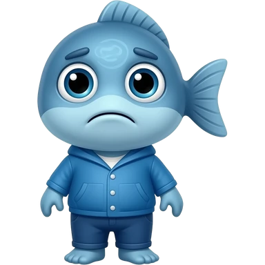 A little blue fish shaped like a little human dressed in blue, looking at us with a very sad face, as if he wants to cry. emoji