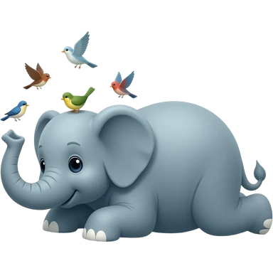 little elephant fell down on floor little birds flying around elephants head emoji