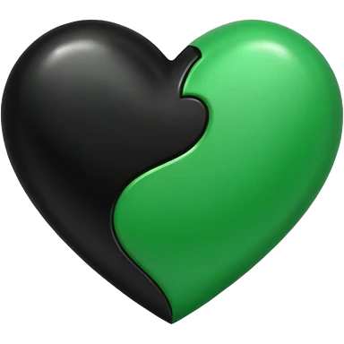 A green heart and black heart mixed together so black on one side and green on the other side emoji