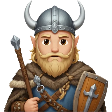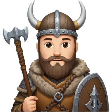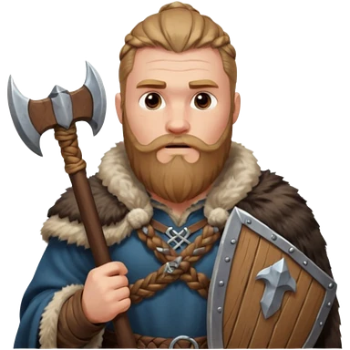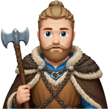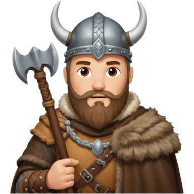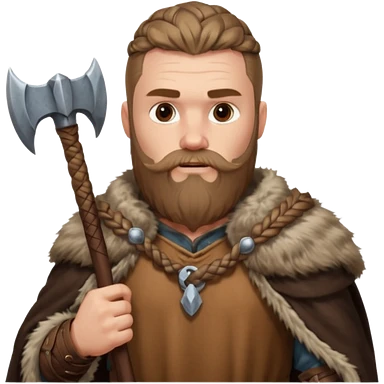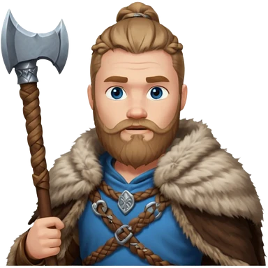 A tall Viking with braided beard, fur cloak, and heavy axe resting on his shoulder. emoji